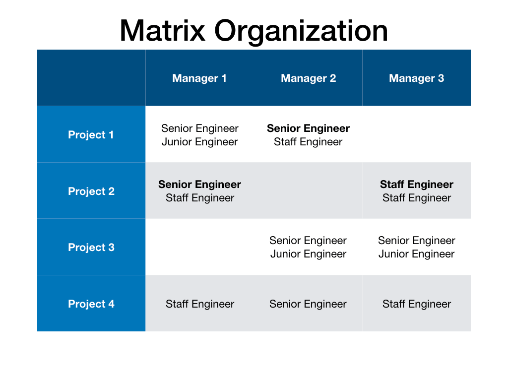 Figure 1: An example matrix organization, with project leads denoted in bold.