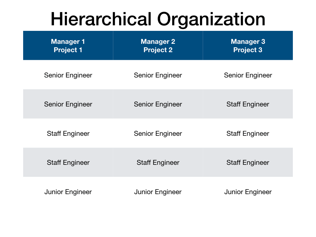 Figure 2: An example hierarchical organization where managers are the project leads.